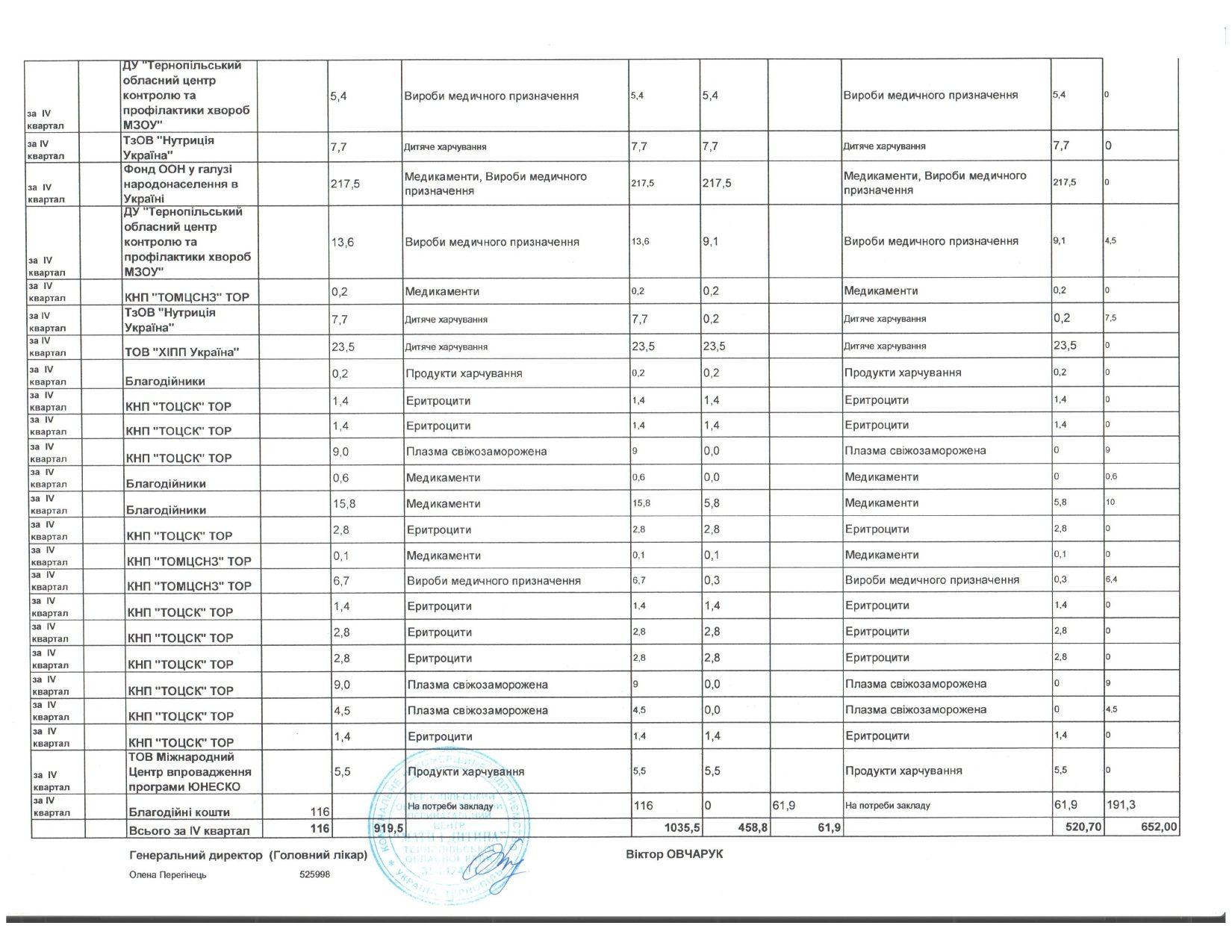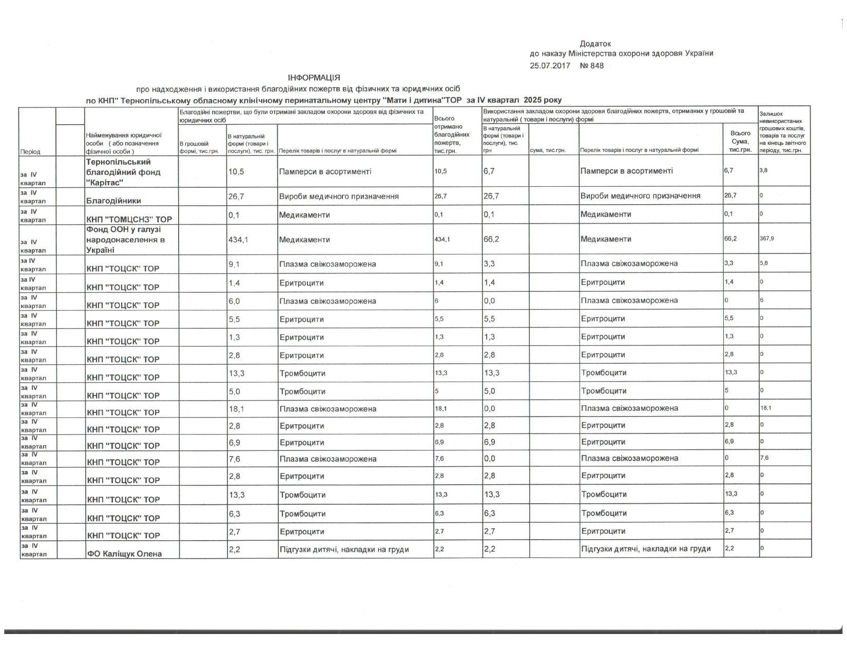 Інформація про надходження і використання благодійних пожертв від фізичних та юридичних осіб за ІV квартал 2025 р.